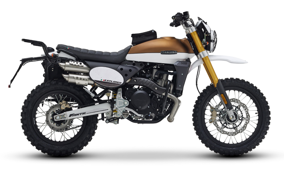 Fai i bagagli e parti. Spegni il PC, scendi in garage e accendi il tuo Caballero Explorer 500cc. Che sia un weekend su strade bianche o un grande Raid in terre lontane lei è la tua compagna di viaggio ideale. Basata sulla versione Rally aggiunge una serie di particolari e accessori per assecondare la tua voglia di avventura.